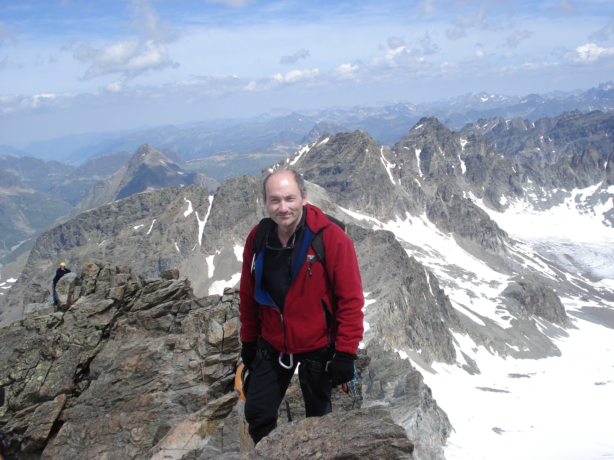 Der Grat ist bis zum Vorgipfel in leichter Kraxelei zu gehen. Vom Vorgipfel zum Hauptgipfel gibt’s dann eine luftigere Kletterei in festem, griffigem Fels. Erik geht bis zum Hauptgipfel. Hier ist er mit 10 Jahren schon einmal oben gewesen – es wird nicht verraten wie lange das her ist. Das luftige Gratstück ist auf jeden Fall noch genau so in der Erinnerung gewesen.