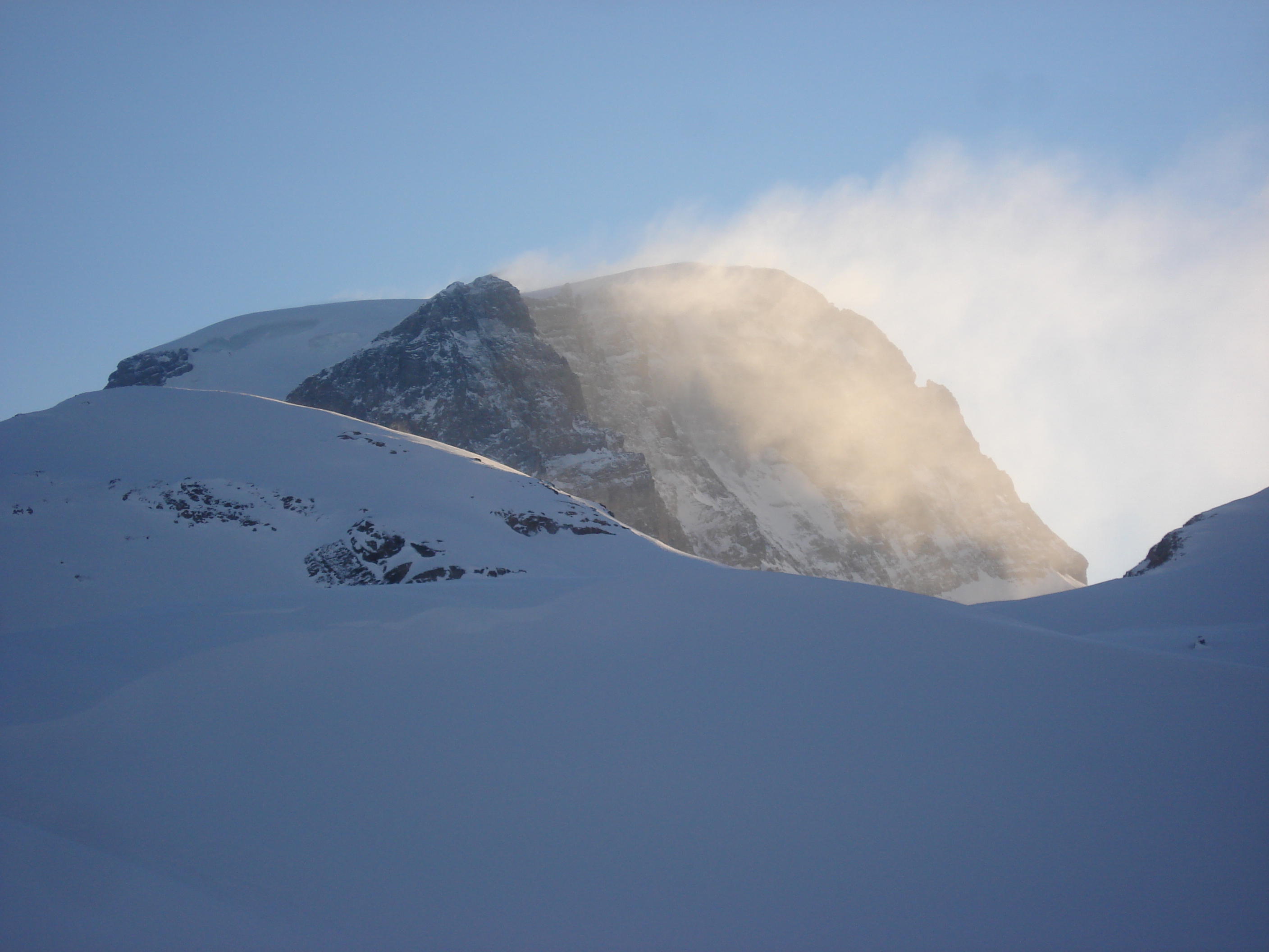 Morgens lassen wir es sehr gemütlich angehen – fast schon zu gemütlich so dass bei Abmarsch die ersten Sonnenstrahlen die Hütte erreichen. Die Spur des Hüttenwirts zum Gletscher ist schon ziemlich zugeweht aber es geht dann doch leichter als ganz ohne. Ab dem Gletscher müssen wir dann selbst spuren. In herrlicher Umbebung geht es bei schönstem Sonnenschein über den Claridenfirn.