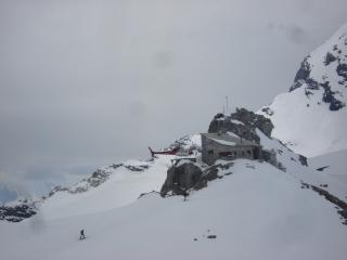An der Hütte ist eine lustige Geburtstagsgesellschaft mit dem Heli eingeflogen die aber bald wieder aufbrechen. Da sich in Hüttennähe der größte Windkolk Europas befindet beschliessen wir noch eine Runde Spaltenbergung zu üben was dann auch ganz erfolgreich gelingt.