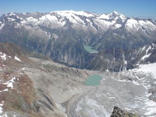Vom Gipfel geht’s dann in einfachem Gelände auf den Gletscher und ohne großen Höhenverlust zur unteren Bächlilücke. Von dort aus ists zur Hütte nicht mehr so arg weit. Den ganzen Tag sind wir – bis auf die holländische Seilschaft die zwischendrin abbrechen- allein im Gebiet.